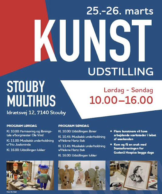 Så er vi nået til den weekend hvor alle kunstnere i kunstnernetværket i Hedensted afholder den store udstilling i STOUBY MULTIHUS Idrætsvej 12 7140 Stouby.